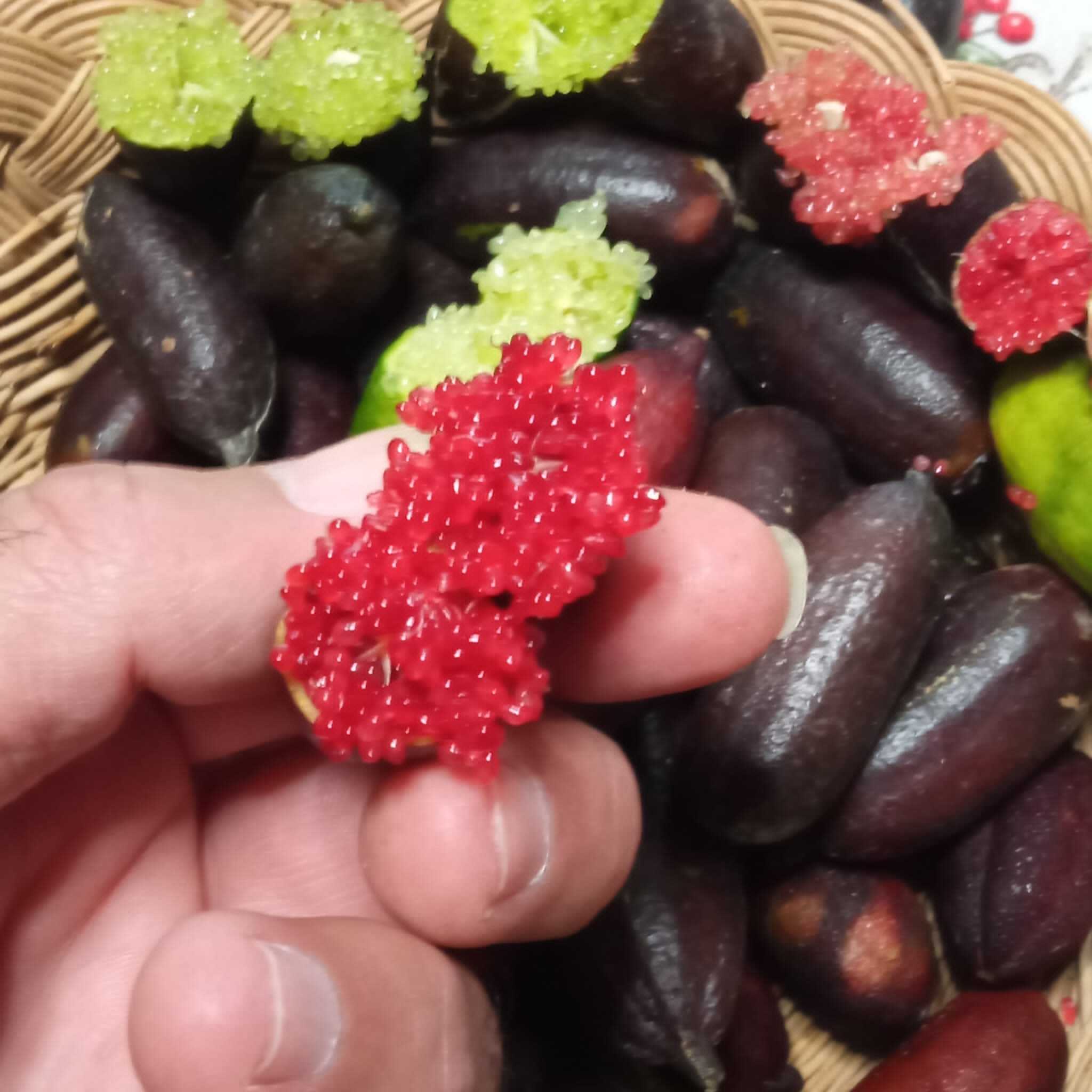 Il finger lime è un frutto incredibilmente unico e versatile. Originario dell'Australia, questo frutto ha una forma allungata e stretta, con una polpa croccante piena di piccoli "perline" di succo. Questi "perline" di succo possono essere utilizzati in molti modi diversi, come guarnizione per cocktail, condimento per insalate, decorazione per dessert e molto altro ancora. Il nostro finger lime è coltivato con cura dai nostri esperti agricoltori, assicurando la massima freschezza e qualità. Abbiamo una vasta selezione di finger lime di diversi colori, come verde, giallo, arancione e rosa, ognuno con il proprio sapore e caratteristiche uniche. Oltre alla sua deliziosa e sorprendente consistenza, il finger lime è anche ricco di vitamine, antiossidanti e minerali essenziali per il nostro corpo. Siamo sicuri che il finger lime diventerà rapidamente uno dei tuoi frutti preferiti, e sarai entusiasta di scoprire tutte le sue possibili applicazioni in cucina. Ordina ora il tuo finger lime dal nostro negozio online e preparati ad un'esperienza culinaria unica ed emozionante!