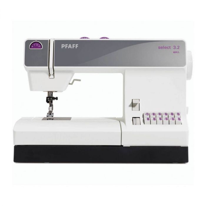 Macchina da cucire meccanica Pfaff Select 3.2. Luce a Led che illumina il piano con luce chiara e senza riflessi. Programmatore dei punti a selezione rapida. 27 punti utili ed elastici perfetti per ogni progetto di cucito. Posizione del cucito a mano libera.. per le appassionate di quilting o per rammendi basterà escludere il trasporto con la leva apposita. Forza dell'ago sempre costante anche a bassa velocità, con tessuti spessi e con molti strati di stoffa. Elevata altezza del piedino..per cucire trapunte, cappotti senza più limiti. Larghezza punto variabile fino a 5.5 mm e lunghezza punto fino a 6.0 mm. Asole perfette senza dover ruotare il tessuto. Cuce i bottoni in un batter d' occhio. Braccio libero di dimensioni minime per lavorare sui capi tubolari come i polsini o orli di pantaloni. Molte posizioni dell'ago per impunture perfette, per esempio quanto si cuce la cerniera. Taglia filo sul lato della macchina e pratico sistema a scatto per sostituire il piedino. Due porta spolette.. per poter lavorare comodamente con l' ago doppio.