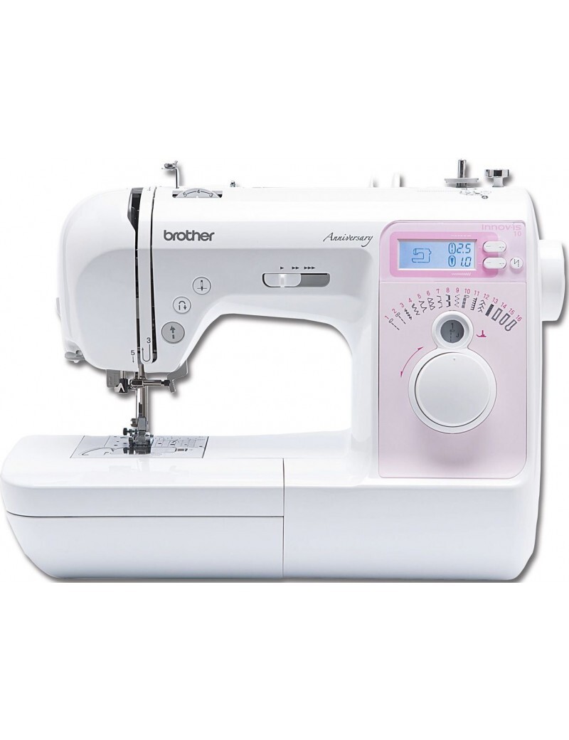 Innov-is 10 A è la macchina per cucire computerizzata realizzata in esclusiva per il 50° anniversario di Brother in Europa. Innov-is 10A è una macchina elettronica, ed usarla è davvero facile poiché dotata della manopola di selezione “jog dial”, che permette di scegliere il punto desiderato. La macchina ha la possibilità di essere usata con o senza pedale elettrico. Il display LCD si rivela prezioso per visualizzare le informazioni dell’ampiezza e della lunghezza del punto e infilare l’ago è facile e veloce grazie al pratico infilatore. A disposizione dei vostri progetti ci sono 16 punti e 3 tipi di asola ed è dotata di regolazione della velocità di cucitura. Cuce su tutti i tipi di tessuto, jeans, maglina, cotone. Caratteristiche: - 16 punti - Display LCD - Infilatore automatico dell’ago - Griffa di trasporto a 7 ranghi - Illuminazione LED - Creazione automatica dell’asola in un’unica fase (3 tipi) - Sistema rapido di avvolgimento della bobina - Bottone di livellamento del piedino