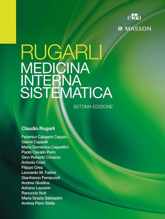 Due volumi copertina rigida. Il Rugarli medicina interna sistematica, arrivato alla sua settima edizione, è lo strumento fondamentale che accompagna lo studente di medicina nel corso del triennio clinico. Anche in questa edizione ha mantenuto la struttura per apparati con una prima parte introduttiva con nozioni di base per categorie nosologiche (definizione, classificazione, fisiopatologia, diagnostica laboratorio e strumentale, caratteristiche cliniche del paziente tipo) seguita da una rassegna delle singole malattie presentate sempre con lo stesso schema (epidemiologia, eziopatogenesi, fisiopatologia, clinica, diagnosi, cenni di terapia, decorso e prognosi). Nella revisione e aggiornamento dei contenuti gli autori hanno prestato particolare attenzione alla parte relativa alla diagnosi. Infatti, con l'intento di abituare gli studenti al ragionamento clinico oltre a un cappello introduttivo sul metodo, è stato dato spazio per ciascuna patologia ai dati relativi alla prevalenza e/o elementi predisponenti, alla sensibilità e alla specificità. È stato inoltre dedicato ampio spazio alle principali comorbidità senza però arrivare alla trattazione del paziente complesso.