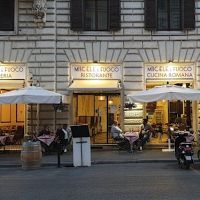 Abbiamo prenotato un pranzo in questo ristorante passando prima per TripAdvisor che purtroppo ha foto fuorvianti sia dell'ambiente ma soprattutto della cucina. Tra le prime foto che compaiono, ce ne sono diverse (non poche) di piatti che non esistono nel menu oppure non esistono più, ma stando a quanto fossero vecchi e rovinati i menu cartacei trovati sul tavolo, dubito avessero pochi anni di vita. La cucina è prevalentemente romano, senza infamia e senza lode, più per turisti che per italiani e/o locali. Carciofo alla romana nella norma, nulla di strepitoso; la gricia aveva un formaggio che non ho apprezzato particolarmente, non credo fosse pecorino romano, oltretutto molto aggrumato e non cremoso; la amatriciana aveva una quantità di salsa abnorme rispetto alla pasta, ci nuotava dentro, ed anche in questo caso gli ingredienti non ci sono sembrati proprio di prima scelta. Buona la focaccia, molto. Titolare scontroso e burbero davanti a noi con i camerieri quando si sono confusi con le portate di un altro tavolo; ha preso in mano il piatto della discordia e lo ha letteralmente sbattuto sul nostro tavolo. Prezzi tutto sommato onesti se si pensa che si sta pranzando in pieno centro storico, meno onesti se si pensa alla qualità del cibo.