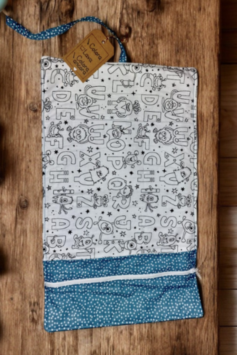 Simpatiche Tovagliette da colorare, lavare, colorare.. tutte le volte che vuoi! Composizione e materiali Tessuto certificato OEKO-TEX® Chiusura con laccetto in cotone (Stile Pergamena) Consigli per il lavaggio Lavare a mano o lavatrice a 30° Non usare asciugatrice Stirare a bassa temperatura e non sulle parti in plastica DA USARE SOLO CON COLORI LAVABILI NEL PREZZO E' INCLUSA UNA CONFEZIONE DI 6 PENNARELLI LAVABILI