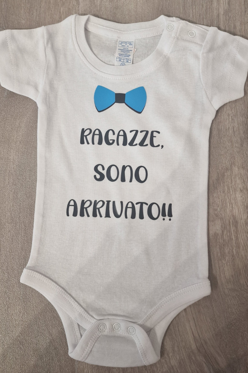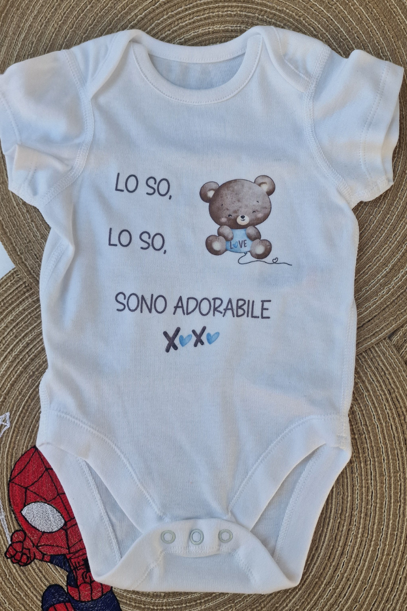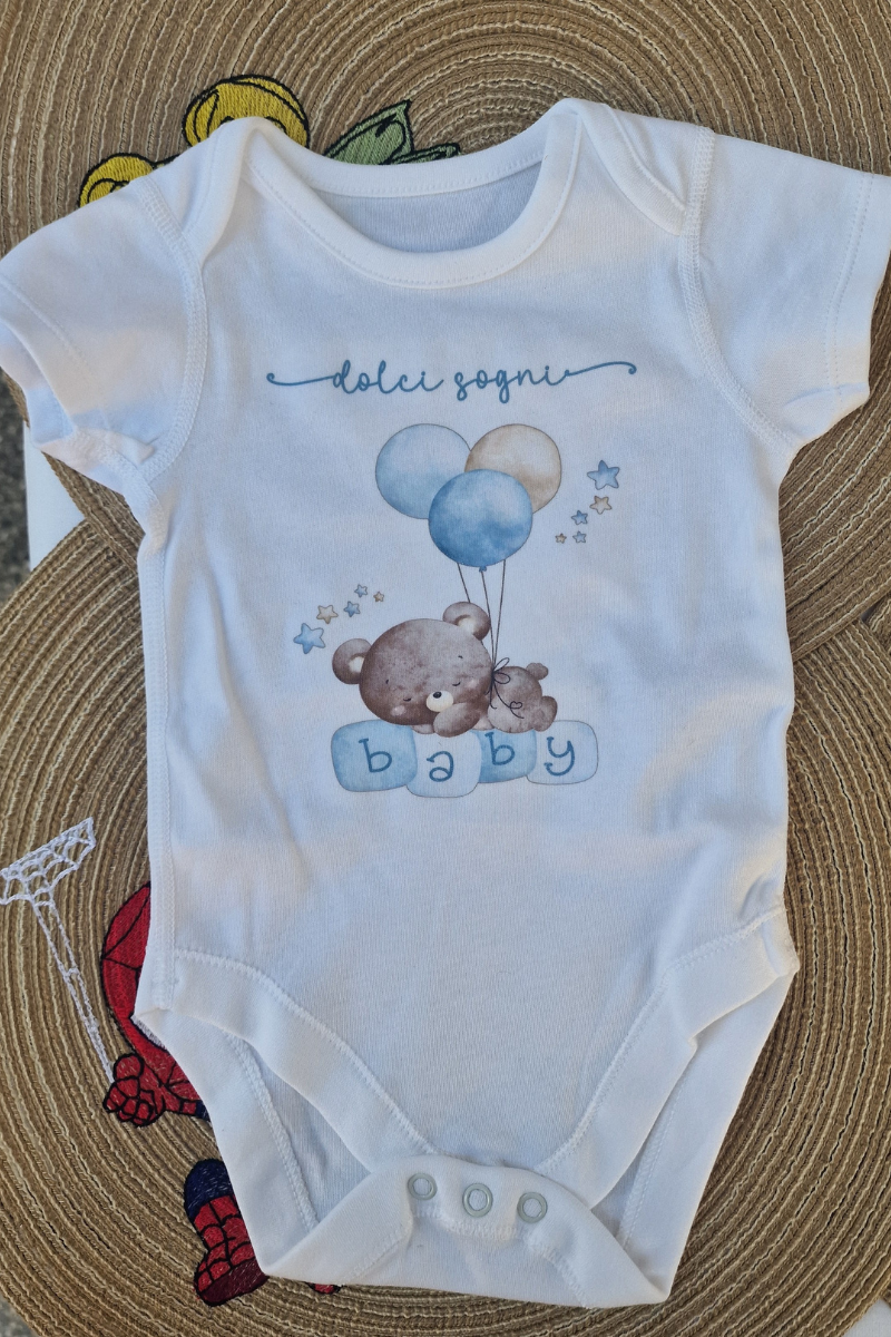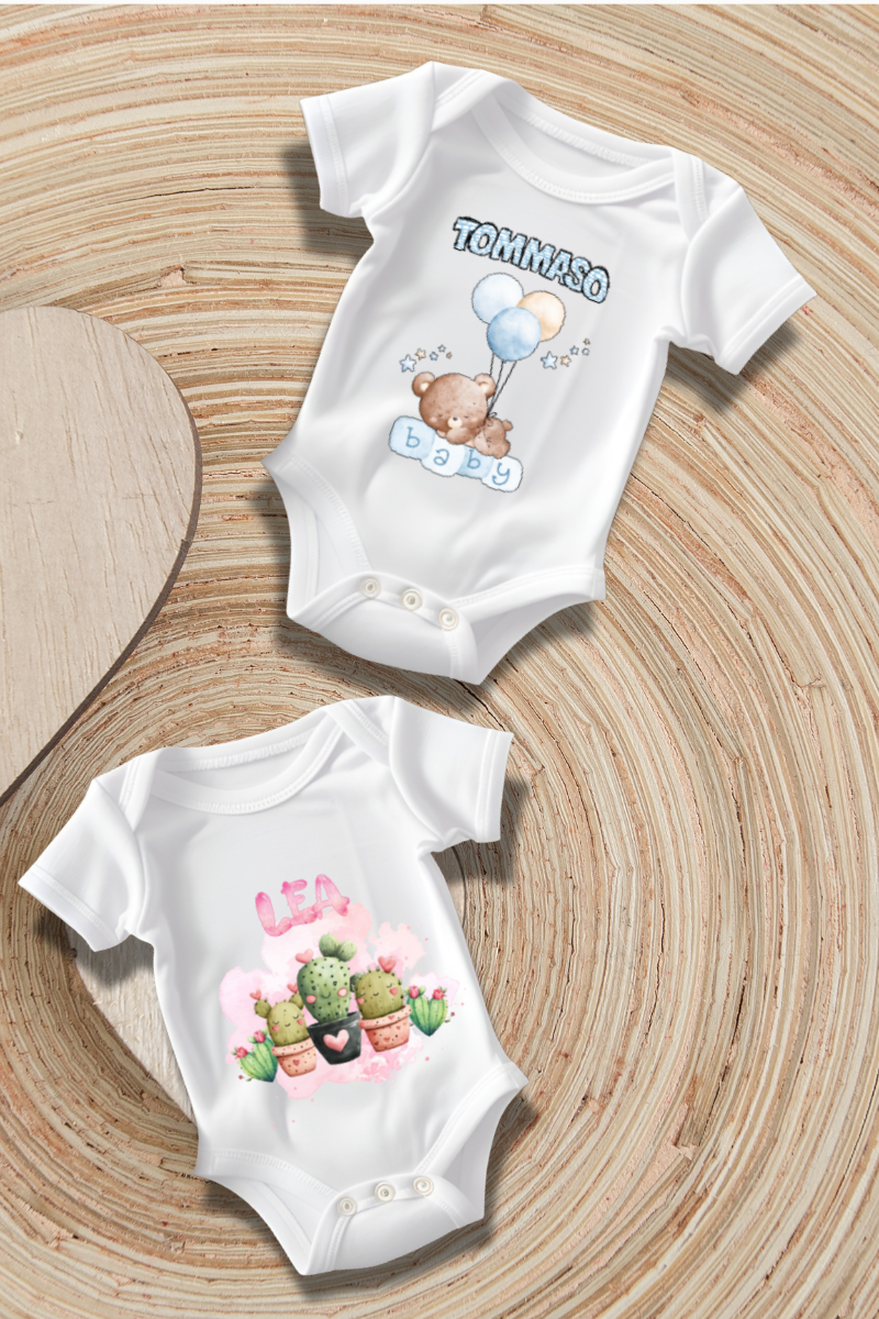 Body bimbo bianchi in puro cotone, disponibili in quattro diverse taglie e personalizzabili con immagine e testo. Puoi scegliere una immagine dalla collezione Simokrea o caricarne una tua con dimensioni 11 x 11 cm, risoluzione 300 dpi Composizione e materiali Cotone Consigli per il lavaggio Lavare a rovescio solo in lavatrice a 30°, lavaggio delicato Non usare asciugatrice Stirare a rovescio a bassa temperatura
