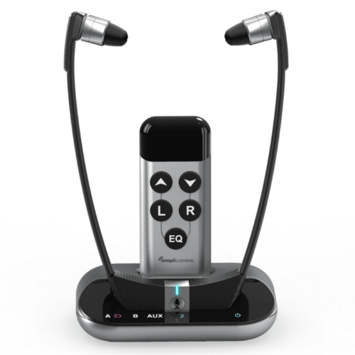 Cuffie stetoscopiche senza fili amplificate fino a 125dB a radiofrequenza, con ingresso ottico digitale. La Cuffia Amplicomms TV 3500 è una cuffia stetoscopica ideale per persone con problemi di udito che desiderano vedere la TV col massimo confort. Queste cuffie dispongono di un comodo Telecomando che permette 1) la regolazione del volume amplificato fino a 125dB, 2) la regolazione del bilanciamento Destra/Sinistra 3) l'utilizzo della funzione Equalizzatore audio che dà la possibilità di scegliere fra 4 profili di ascolto differenti fra cui anche la possibilità di aumentare il suono della voce e ridurre il rumore TV di sottofondo. Queste caratteristiche la rendono un prodotto perfetto per utilizzatori anziani, anche con manualità ridotta. L'archetto è estremamente leggero (solo 61gr) e gli auricolari sono morbidissimi e orientabili quindi questa cuffia può essere indossata per diverse ore di ascolto senza procurare fastidio a chi la indossa. Il tasto del microfono permette a chi indossa Amplicomms TV 3500 di partecipare alle conversazioni nella stanza con la semplice pressione di un pulsante. Esistono 3 modi diversi per collegare la base alla sorgente audio: - Si può utilizzare la connessione immediata e super facile senza cavo, grazie a un microfono integrato nella base che cattura il suono della TV o dell'Hifi - OPPURE cavo audio (Jack 3.5mm) - o collegamento con cavo audio ottico (TOSLINK) per un suono stereo ad alta definizione Contenuto della confezione: - 1 Cuffia stetoscopica TV 3500 con 2 auricolari in gomma taglia L già montati - 2 auricolari aggiuntivi in gomma taglia S - 1 Base di ricarica - 1 Telecomando - 1 Cavo audio analogico (con jack da 3,5 mm su entrambe le estremità) - 1 Cavo audio digitale ottico TOSLINK - 2 Pile AAA per il telecomando - Guida multilingue (italiano incluso)