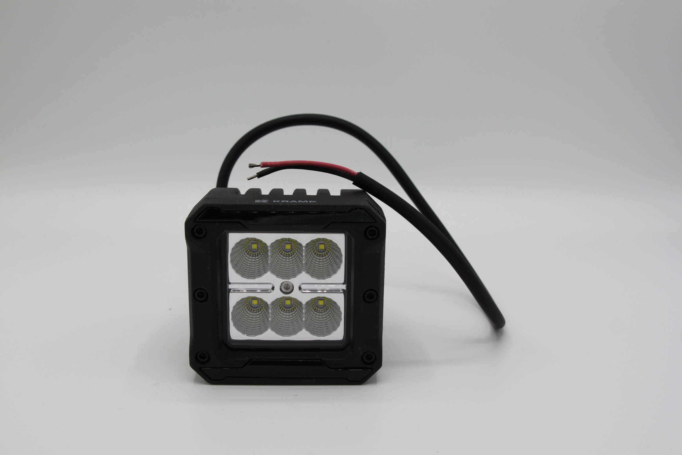 Faro led da 1620 lumen 18W, alimentazione da 10 a 30v in corrente continua, IP67/69k dimenzioni 81x78x76mm profondita Fornito completo di staffa per il montaggio Corpo lumino a 6 led