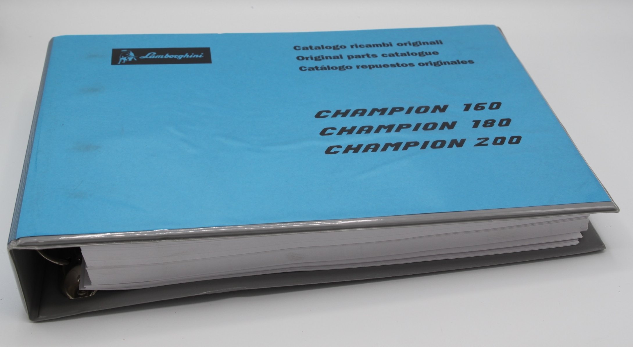 CATALOGO RICAMBI COMPLETO DI CODICI PER TARTTORE LAMBURGHINI CHAMPIONS 160-180-200. IL CATALOGO E NUOVO E ORIGNALE, NO FOTOCOPIATO.