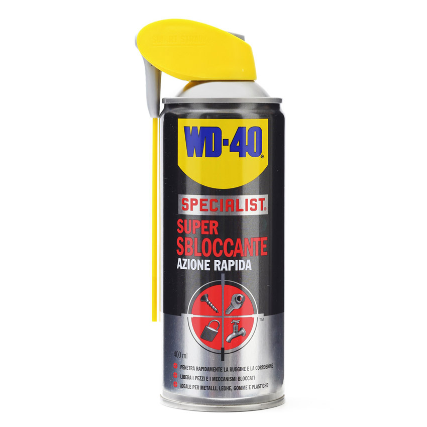 IL SUPER SBLOCCANTE WD40 SPECIALIST PENETRA RAPIDAMENTE E LIBERA I PEZZI CON NOTEVOLE EFFICACIA. LA SUA FORMULA E' ADATTA ANCHE NEI CASI DIFFICILI DI GRIPPAGGIO E OSSIDAZIONE. E' RESISTENTE ALL'ACQUA E PUO' ESSERE UTILIZZATO SU TUTTI I METALLI E SULLA MAGGIOR PARTE DELLE VERNICI DI SUPERFICIE. RACCOMANDATO PER: DADI, BULLONI, CHIAVISTELLI, CATENE, CUSCINETTI, CERNIERE, PULEGGE, CONDUTTURE, NASTRI RASPORTATORI, ASSI, UTENSILI, PARATOIE.. COLRE BEIGE, LEGGERMENTE TORBIDO TEMPERATURA DI UTILIZZO DA -20° A +90°C REGISTARZIONE NSF CATEGORIA H2, N°145375