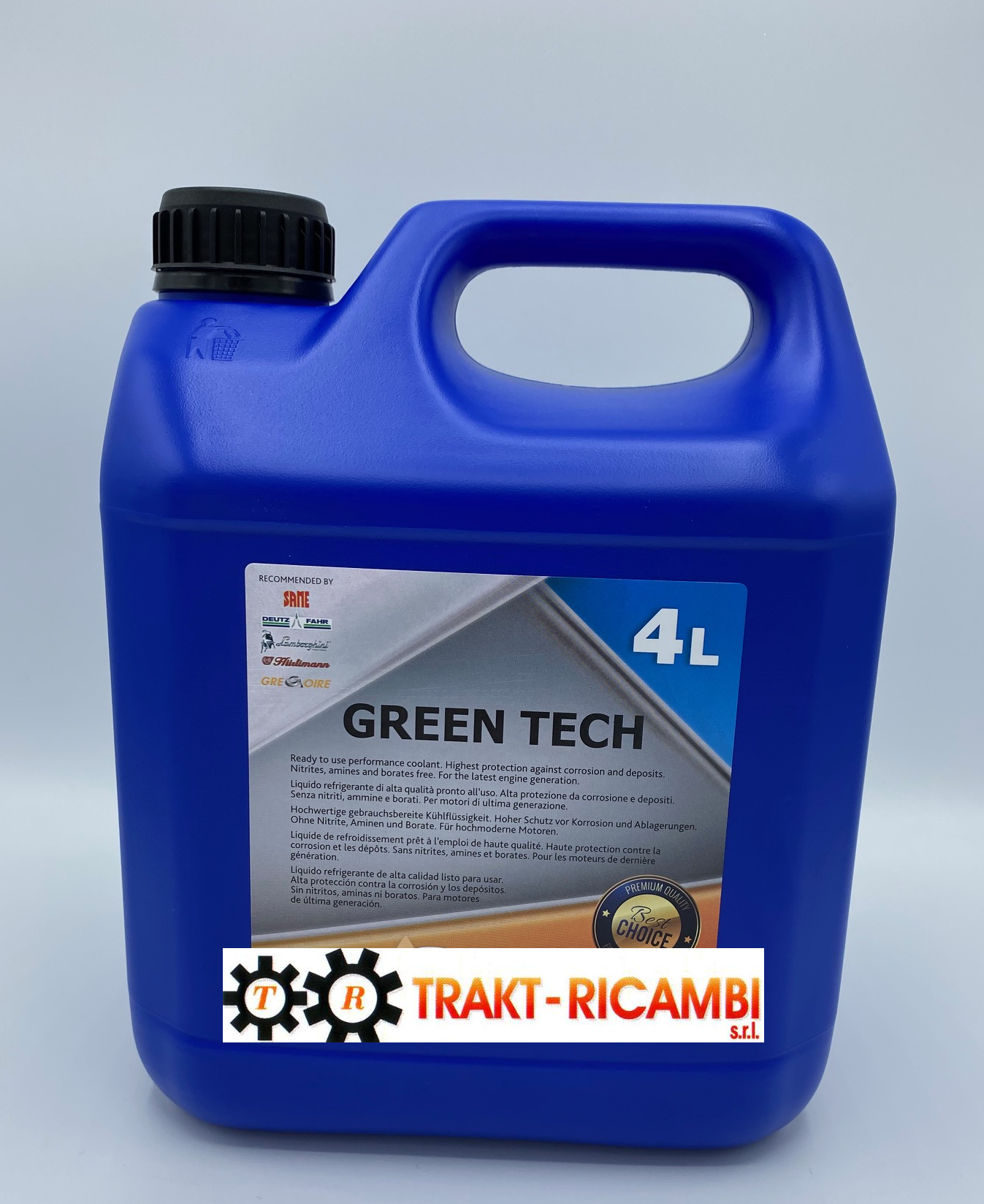 Il SDF GREEN TECH è un liquido refrigerante/antigelo ad alte prestazioni, formulato appositamente per i veicoli agricoli e industriali del gruppo SDF (Same, Deutz-Fahr, Lamborghini, Hürlimann). Questo prodotto garantisce una protezione efficace del sistema di raffreddamento anche in condizioni operative estreme. Caratteristiche Tecniche Principali Tipo: Liquido refrigerante organico a base di glicole etilenico. Tecnologia: OAT-Si (inibitori organici + silicati). Colore: Verde brillante. Concentrazione: Pronto all’uso (non diluire). Volume: 4 litri. Punto di congelamento: -42 °C. Punto di ebollizione: +110 °C (con pressione sistema). Codice SDF: 0.901.0045.3/L. Vantaggi Prestazionali Protezione a lungo termine contro: corrosione di tutti i metalli (alluminio, ghisa, rame, ottone), cavitazione sulle camicie dei cilindri, formazione di incrostazioni e depositi. Alta stabilità chimica e compatibilità con elastomeri e materiali plastici. Estensione intervalli di manutenzione: ideale per impieghi gravosi e lunghe durate di servizio. Compatibile con i sistemi misti di raffreddamento (metallo-plastica). Formulazione esente da: nitriti, ammine, borati e fosfati. Conformità e Specifiche Tecniche Conforme alle normative internazionali e OEM: Norme tecniche: ASTM D 3306 / D 6210 / D 7583 SAE J1034 BS 6580 JIS K 2234 CUNA NC 956-16 ÖNORM V 5123 OEM: conforme a requisiti VOLVO TR-31854114-002 e altri costruttori di motori agricoli. Applicazioni Consigliate Trattori e macchine agricole SDF. Motori con camicie umide. Impianti di raffreddamento ad alte prestazioni.