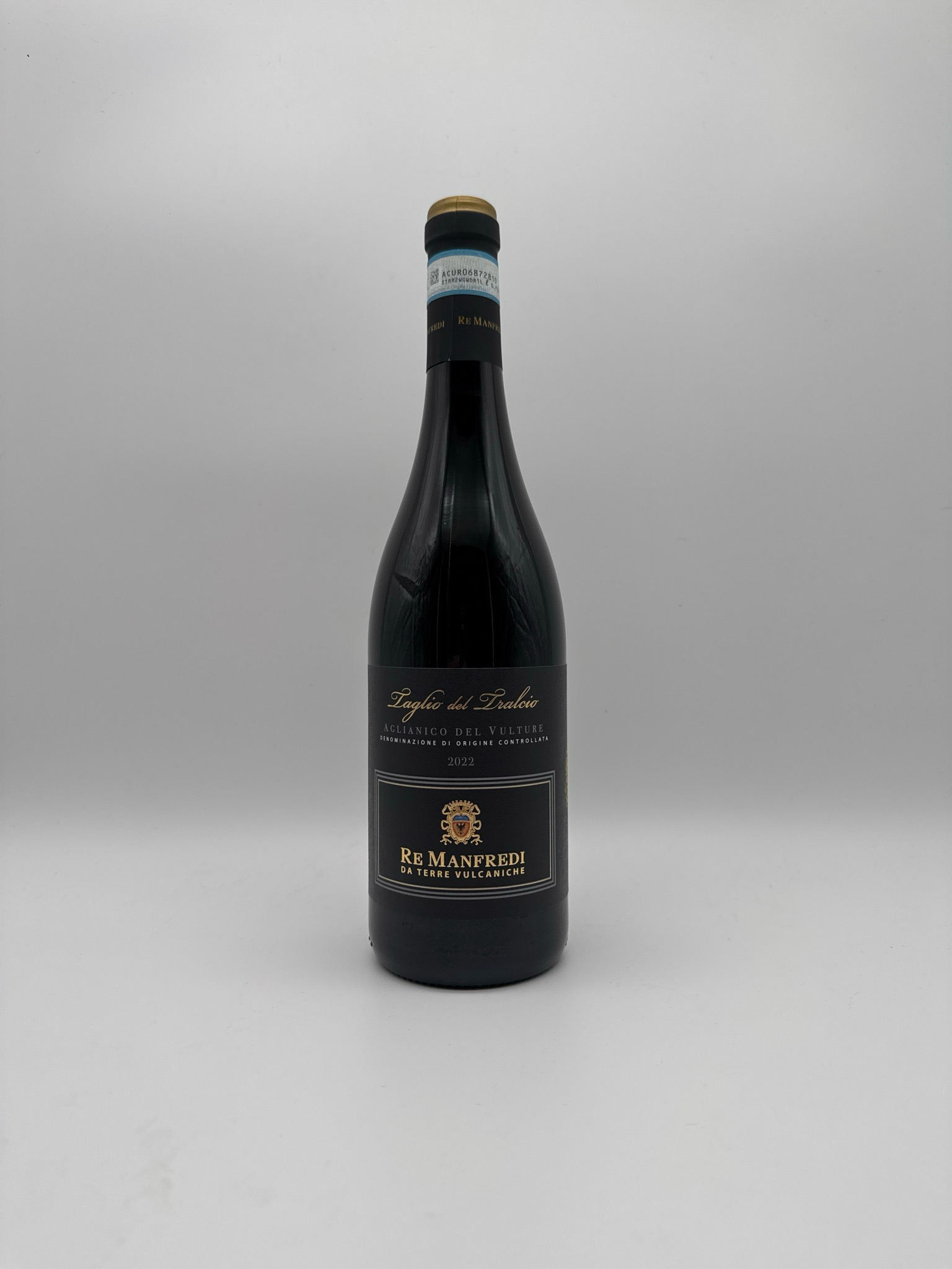 Denominazione: Aglianico del Vulture DOC Vitigni: Aglianico del Vulture Gradazione alcolica: 14,5% Formato: 750 ml Consumo ideale: Fino a 20 anni ben conservato in cantina Temperatura ideale: 18-20 C° Tipologia di vino: Rosso Abbinamenti: Paste al forno, carni rosse, brasati, formaggi stagionati. calzoncelli ripieni di ricotta e cannella con ragù di agnello, pollo ripieno alla Lucana cotto al forno. È un vino che nasce dal pensiero di poter esprimere l’Aglianico in una versione più morbida e moderna grazie alla tecnica detta “taglio del tralcio”. Ne deriva un vino più fine, dal sapore avvolgente, con un finale rotondo, molto piacevole. La Cantina Re Manfredi nasce nel 1998 nel cuore della zona di produzione dell’Aglianico del Vulture, a pochi chilometri da Venosa, dove la moderna e dinamica cantina Terre degli Svevi che possiede un moderno impianto di vinificazione ed una prestigiosa barricaia, affina i vini. Il vulcano Vulture, crea un clima continentale, caratterizzato da inverni molto freddi ed estati calde con forti escursioni termiche. La lava unita al suolo ricco di argilla, calcio, azoto e tufo forma un terroir unico nel panorama vitivinicolo del Mediterraneo. La componente di origine vulcanica conferisce ai vini una particolare mineralità, sapidità e sentori speziati. Quando le uve sono mature si pratica il cosiddetto “taglio del tralcio” che prevede di tagliare il capo a frutto in modo da interrompere il flusso di linfa tra radici e grappoli. È grazie a questo particolare fenomeno di disidratazione, che le uve subiscono una concentrazione dei sentori di frutta matura ed un ammorbidimento dei tannini. Le uve raccolte a mano, iniziano il processo di vinificazione con una macerazione a freddo della durata di 10 giorni a cui fa seguito la fermentazione alcolica. Il vino infine affina per circa 6 mesi in botte grande e per 6 mesi in bottiglia. Dal colore rosso porpora, profumo intenso di frutti rossi quali mora e amarene. Al palato è morbido con tannini avvolgenti. Finale rotondo e fruttato. Si abbina bene a paste al forno, carni rosse, brasati, formaggi stagionati, ragù di agnello, pollo ripieno alla Lucana cotto al forno. Eccellente in abbinamento a controfiletto di manzo alla piastra con riduzione di Aglianico del Vulture Taglio del Tralcio, tagliata di puledro su letto di cipolle rosse in agrodolce, Pecorino Misto PAT a lunga stagionatura.