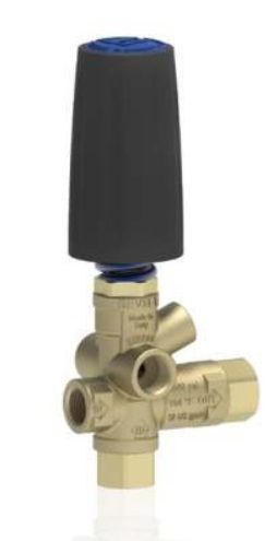 CORPO: OTTONE - PRESSIONE MAX (BAR): 250 - PORTATA PERDITA (L/MIN): 1,1 - PORTATA MAX (L/MIN): 30 - ENTRATA: G 3/8”F (ingresso girevole) - USCITA: G 1/4”F